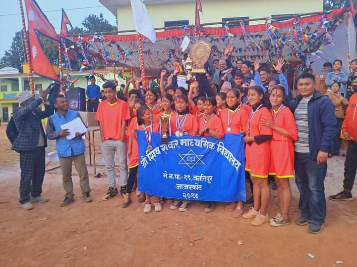 जिल्लाको भेरी नगरपालिकाको आयोजनामा संचालित राष्ट्रपति रनिङ्ग शिल्ड तथा चौँथो मेयर कपको उपाधी शिवशंकर मावि जगतीपुरले जितेको छ । सदरमुकाम खलङ्गास्थित त्रिभुवन माविको खेल मैदानमा सम्पन्न नगर स्तरिय प्रतियोगितामा ११ स्वर्ण, ५ रजत र ५ कास्य सहित शिवशंकर मावि प्रथम भएको हो ।