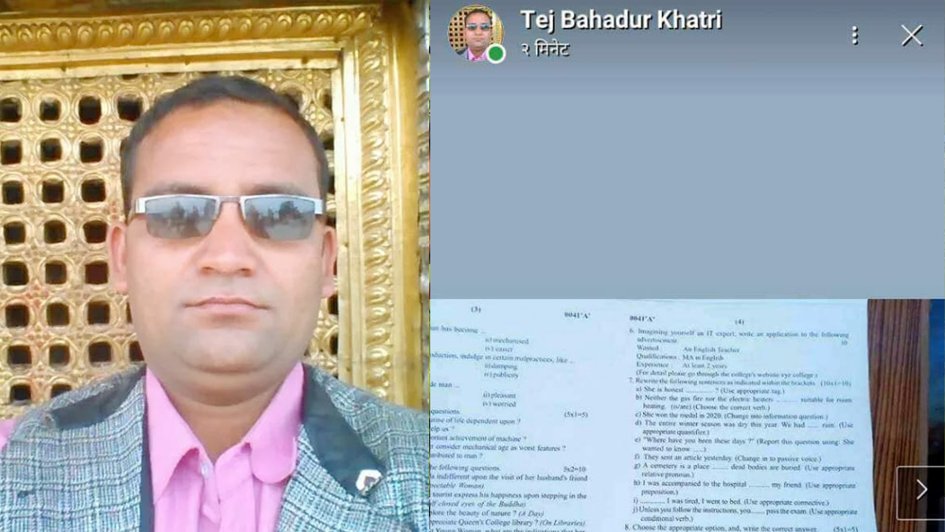 आज मङ्गलबारदेखि कक्षा १२ का विद्यार्थीहरुको ग्रेडबृद्धि परिक्षा सञ्चालन भइरहेको छ । जाजरकोट जिल्लाको खलंगामा रहेको त्रिभुवन माद्यमिक विद्यालयमा ग्रेडबृद्धि परिक्षा भइरहेको हो । तर परिक्षा सञ्चालन भइरहेका बेला सोही विद्यालयमा अध्यापन गराउने एक शिक्षकको फेसबुक स्टोरीमा परिक्षाको प्रश्नपत्र बाहिरीएको थियो । सोही विद्यालयमा पढाउने गणित विषयका शिक्षक तेज बहादुर खत्रीको फेसबुक स्टोरीबाट परिक्षाको प्रश्नपत्र बाहिरीएको हो । परिक्षा नसकिदै प्रश्नपत्र बाहिरीए पछि शिक्षक खत्रीको चौतर्फी आलोचना भएको छ । शिक्षक खत्रीको फेसबुकबाट अङ्ग्रेजी विषयको प्रश्नपत्र बाहिरीएको हो । यद्यपी शिक्षक खत्रीले भने यसबारेमा आफ्नो आधिकारिक धारणा व्यक्त गरेका छैनन् ।