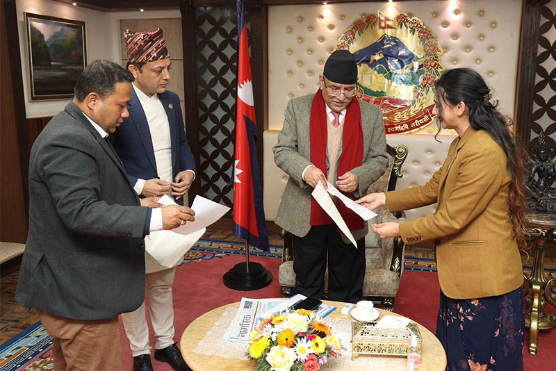 श्रम, रोजगार तथा सामाजिक सुरक्षामन्त्री डोलप्रसाद अर्याल, शिक्षा, विज्ञान तथा प्रविधिमन्त्री शिशिर खनाल र स्वास्थ्य तथा जनसंख्या राज्यमन्त्री डा तोसिमा कार्कीले प्रधानमन्त्री प्रचण्डसँग भेटेर मन्त्री पदबाट दिएको राजीनामा बुझाएका हुन्।
