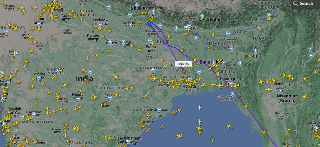 नेपाल एयरलाइन्सको आरए-४१६ विमान काठमाडौंको आकाशमा फन्को मारेर अहिले कोलकातामा अवतरण गरेको छ ।