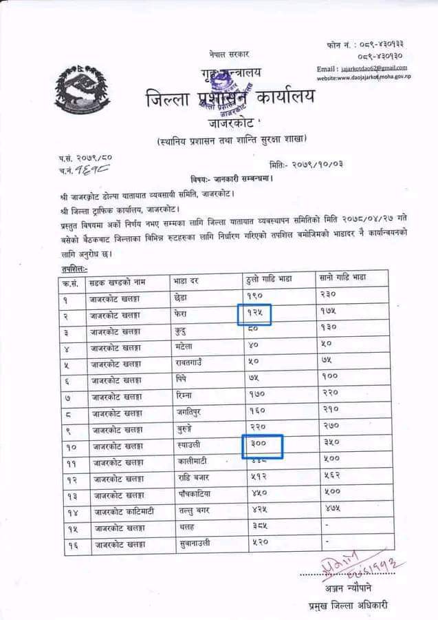 निर्धारण गतिएको नया भाडादर विवादमा जाजरकोट । जाजरकोट जिल्ला प्रशासन कार्यालयले तोकेको नया भाडादर...